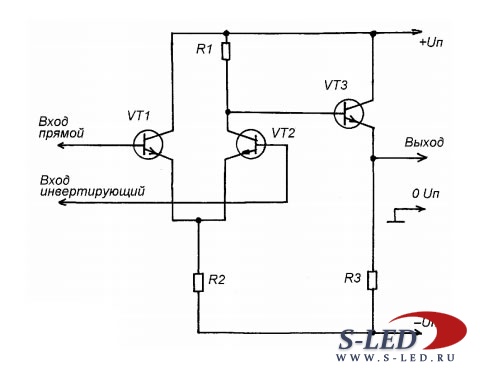 Одной из широко распространенных схем усилительных каскадов является дифференциальная схема. Дифференциальные каскады лежат в основе широкоизвестных операционных усилителей. Мы уже рассматривали как функционирует операционный усилитель и проводили с ним опыты, но сам операционный усилитель рассматривался как некий «аналоговый элемент», имеющий определенные свойства.